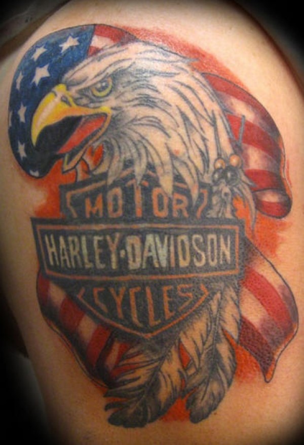 肩部彩色爱国者哈雷戴维森的纹身图片