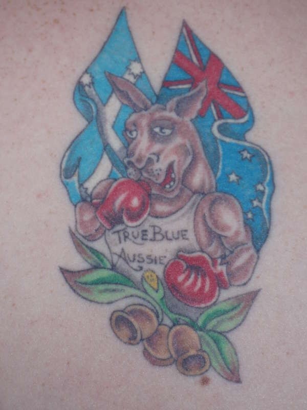 肩部彩色澳洲袋鼠爱国纹身图案