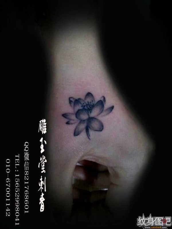手部个性盛开莲花纹身图片_植物纹身图案大全_纹身图吧