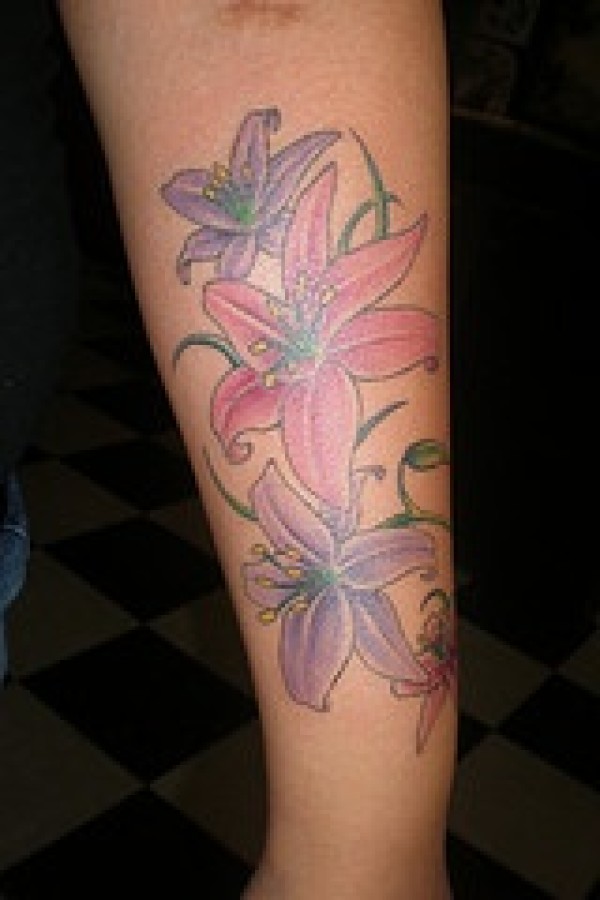 女性手臂彩色百合花纹身图案