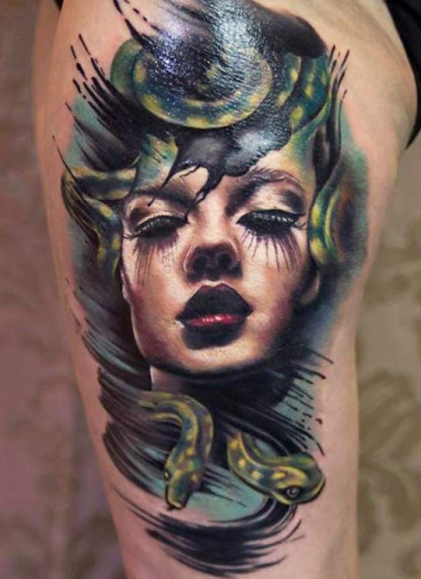 新的学校风格彩色美杜莎肖像纹身图案