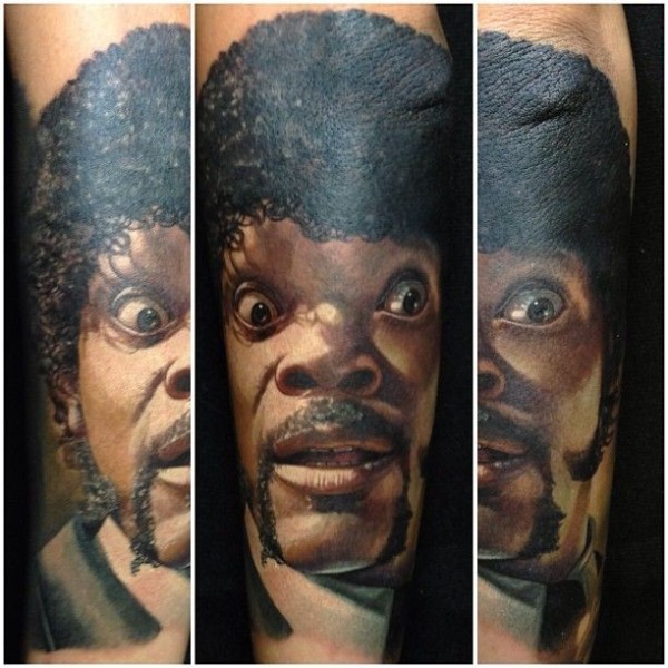 手臂彩色逼真的人像纹身图片
