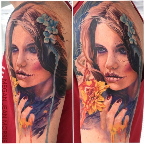 女性肩部神秘女人肖像纹身图案