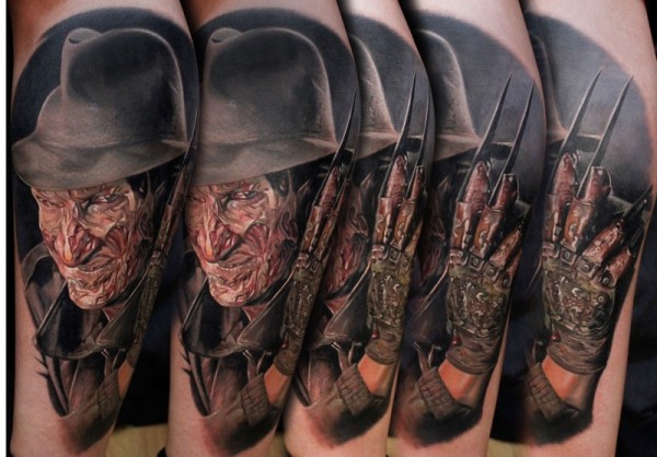 现实主义风格的彩色Fred Kruger肖像纹身