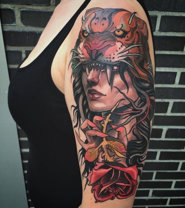 现代传统风格的彩色妇女肖像纹身