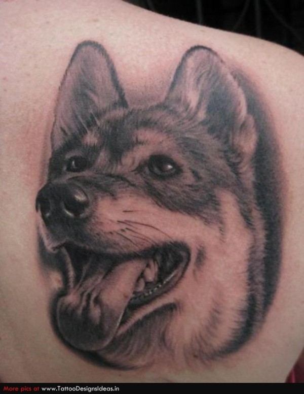 肩部黑棕色德国牧羊犬纹身图案