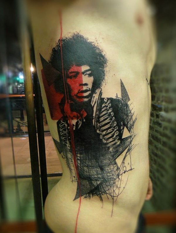 腰侧彩色现实主义明星肖像纹身图案