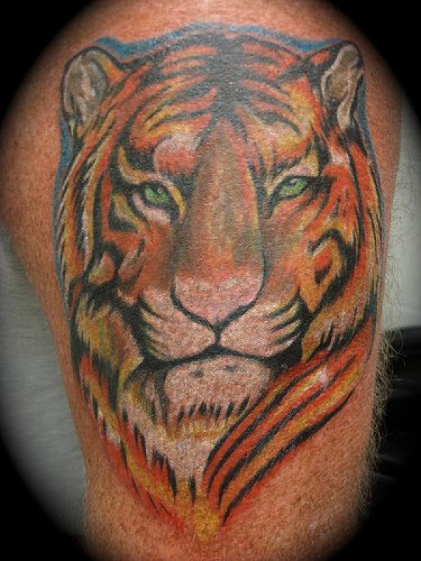 肩部多彩逼真的老虎纹身图案