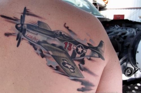 插画风格逼真的二战战斗机纹身图案