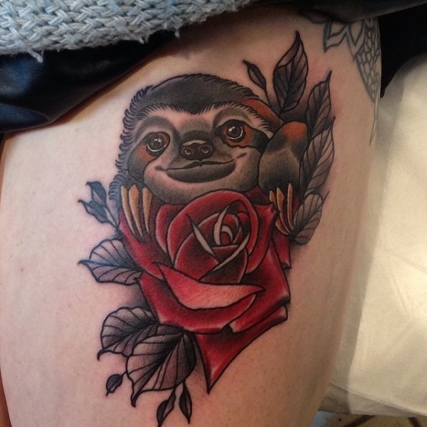 腿部令人印象深刻的彩绘懒惰与花纹身图案