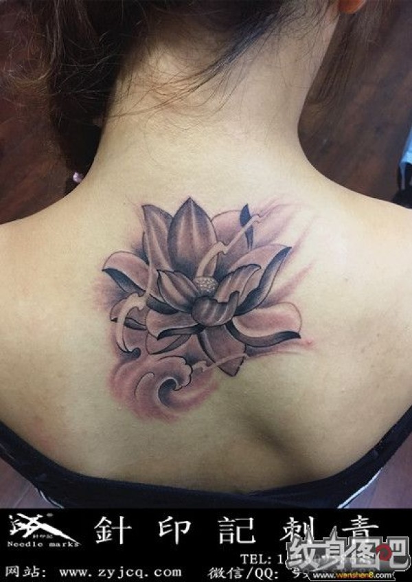 背部莲花纹身-福建三明沙县针印记纹身胡宇作品