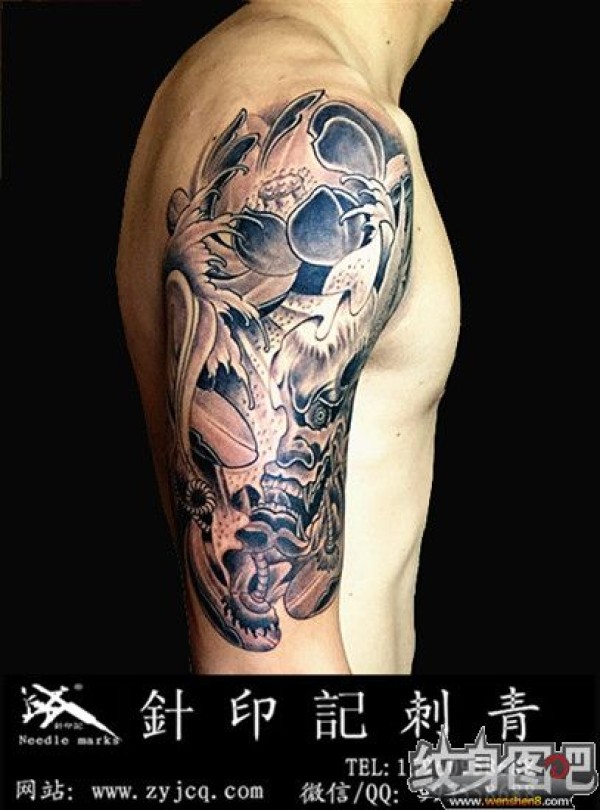 手臂莲花蛇纹身图案_臂部纹身图案大全_纹身图吧