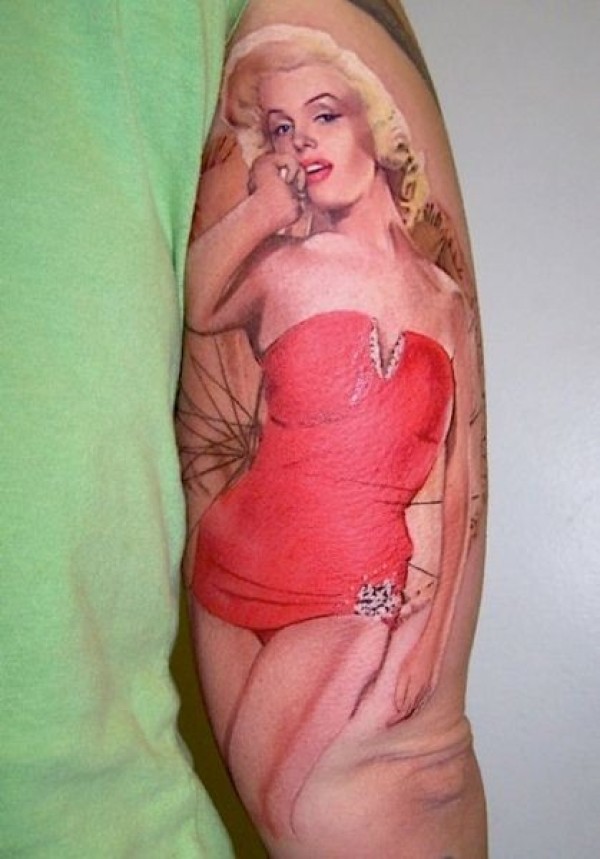 手臂彩色欧美性感女郎纹身图片