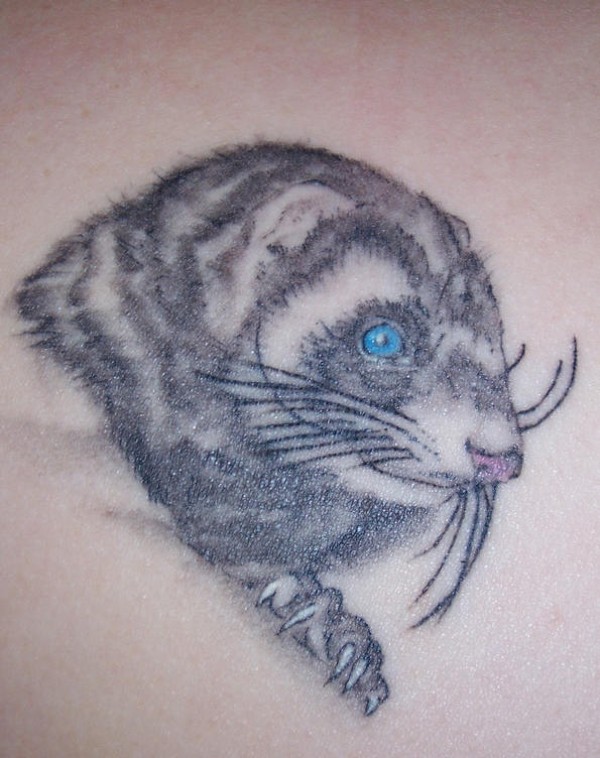 背部彩色老鼠头纹身图片