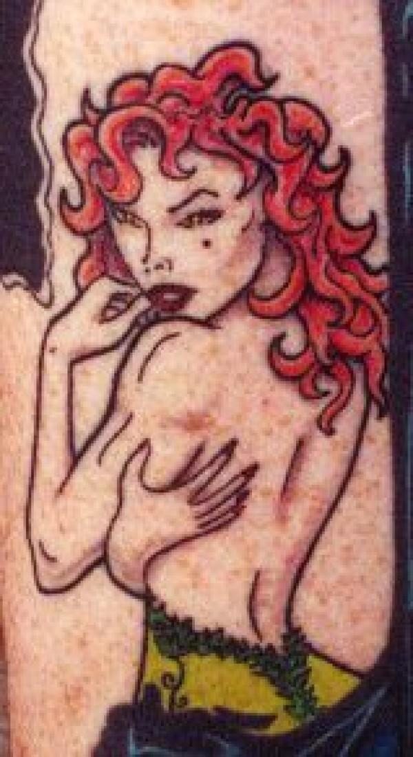 插画风性感红头发的女人纹身图案