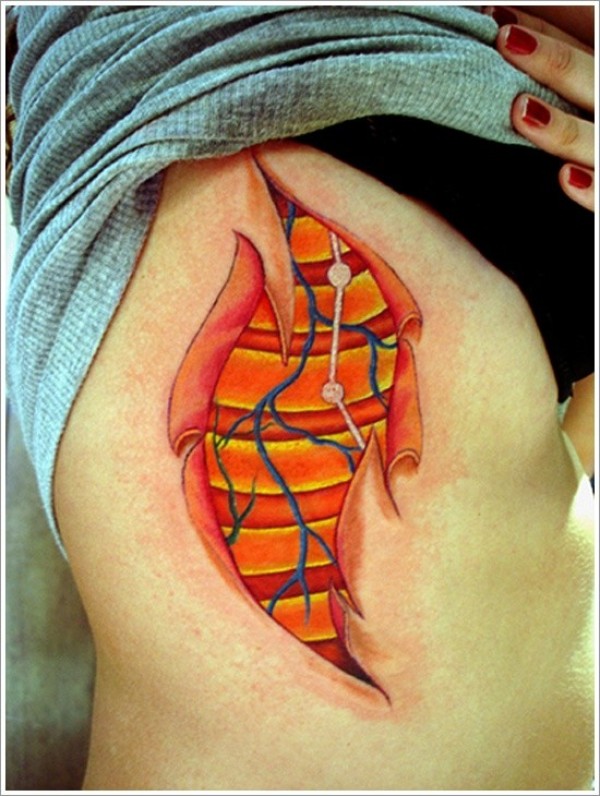 腰侧彩色皮肤纤维下皮肤撕裂纹身图案
