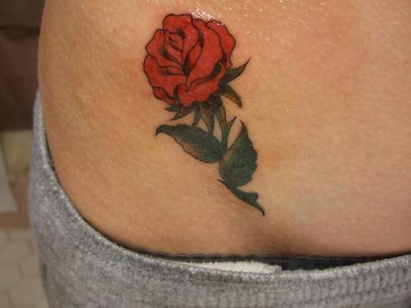 腰上小清新的红玫瑰纹身图案