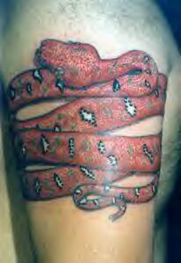 肩部彩色红色的蛇纹身图案