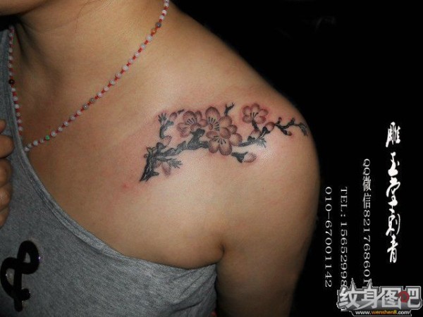 女性肩膀上多款漂亮的花朵纹身图案
