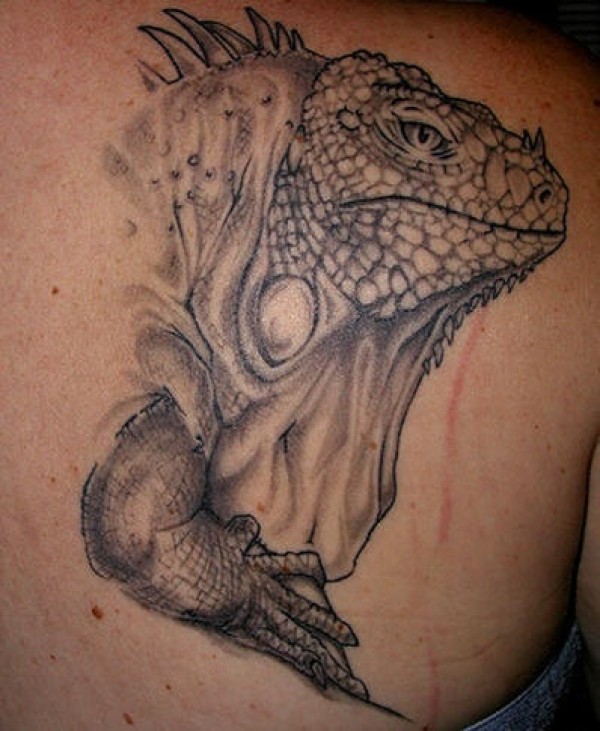肩部黑灰蜥蜴爬行动物的纹身图案