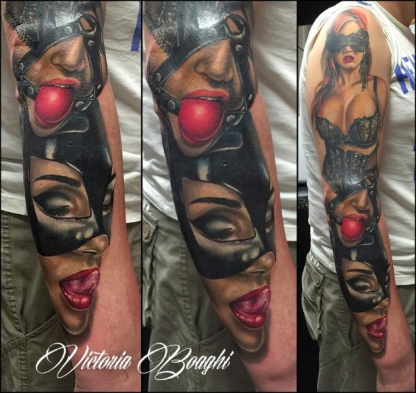 现实主义风格的彩色性感女子纹身图案