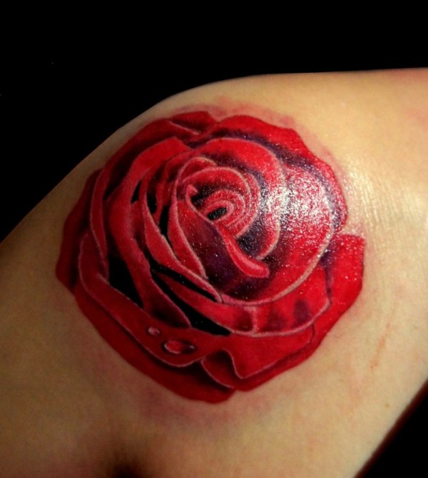 肩部彩色简单普通大玫瑰纹身图案