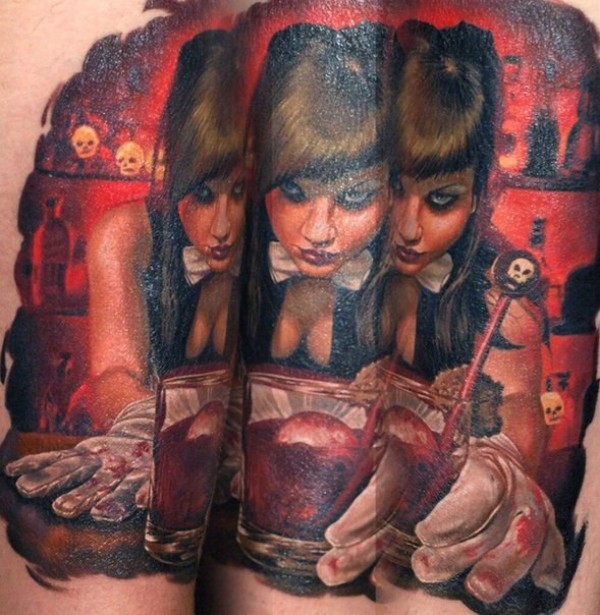 令人毛骨悚然的彩色性感女人纹身图案