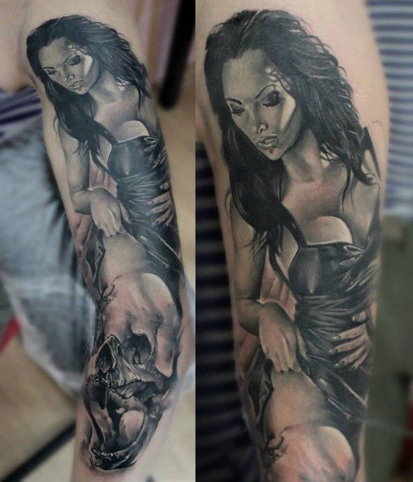 手臂黑灰性感迷人纹身图案