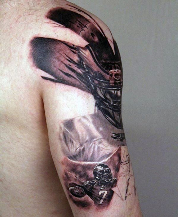 肩部彩色体育游戏玩家纹身图案