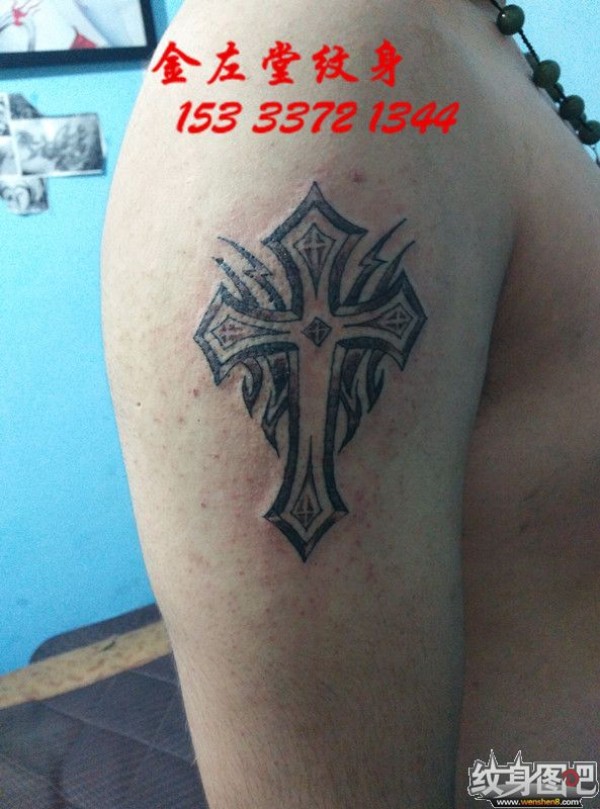 十字架纹身安阳水冶纹身金左堂纹身店工作室盖疤修改纹身 15333721344