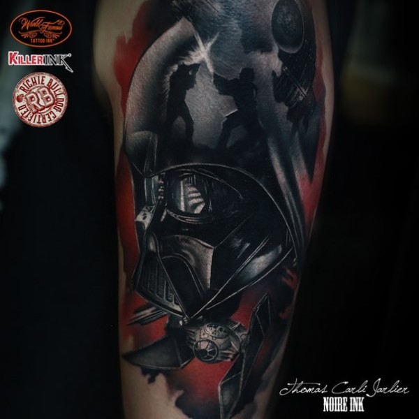 插画风格彩色达斯·维德的头盔纹身图案