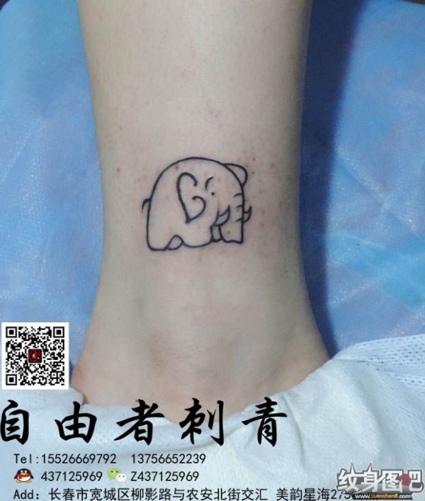 小腿上一款大象纹身图案_腿部纹身图案大全_纹身图吧