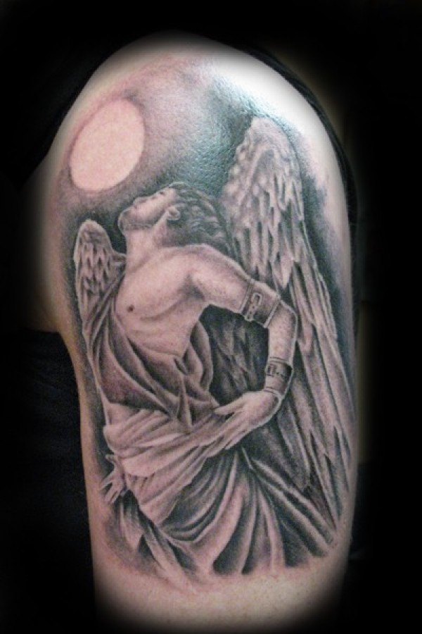 复古照片风格伊卡洛斯雕像与太阳纹身图案