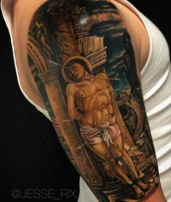 戏剧性风格肩部受伤的圣人纹身图案