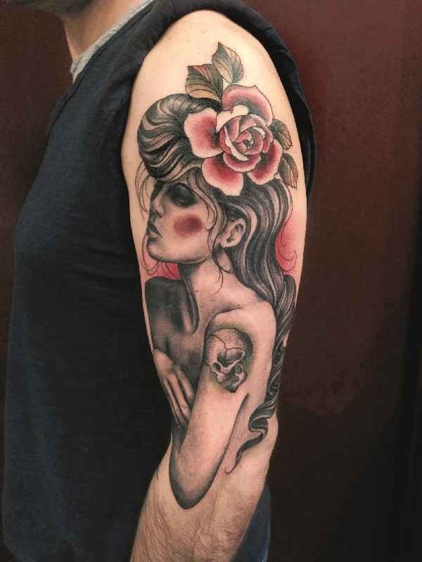旧货风格的彩色女人花纹身图案