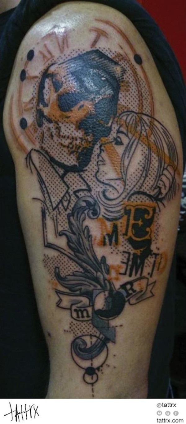 点画风格色的令人毛骨悚然的夫妇纹身图案