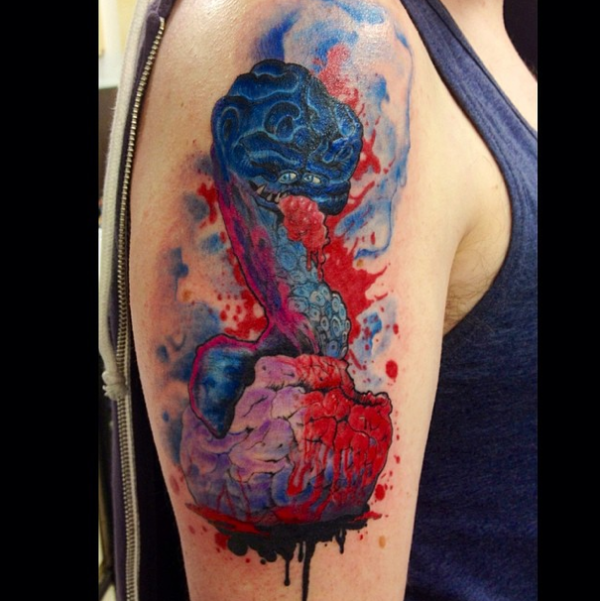 肩部彩色可怕血腥蛇纹身图案