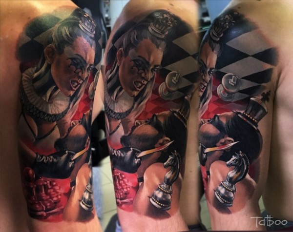 新流派彩色象棋人物和人头纹身图案
