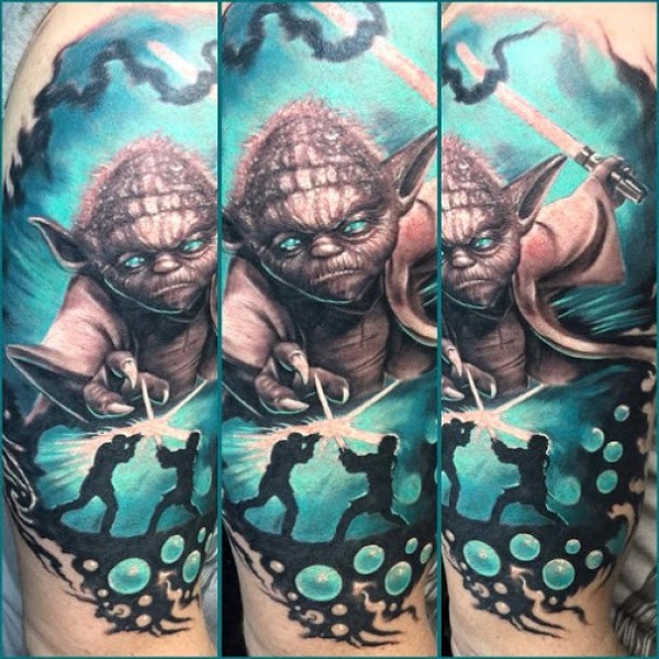 现代传统风格的彩色肩部绝地战士纹身图片