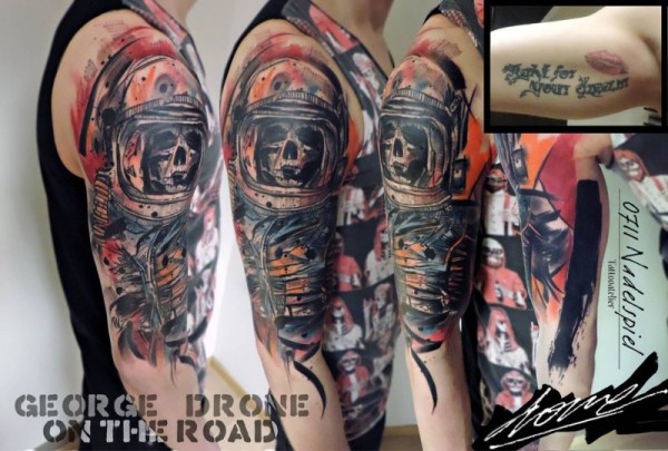 肩部新的学校风格的太空骷髅纹身图案
