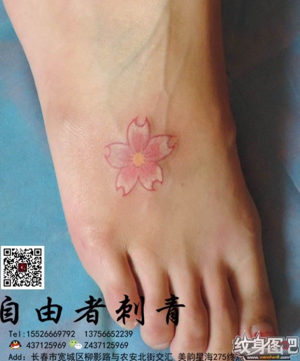 清新小桃花脚踝纹身_脚部纹身图案大全_纹身图吧