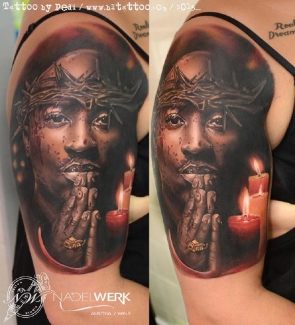奇怪的彩色蜡烛和人物肖像纹身图案