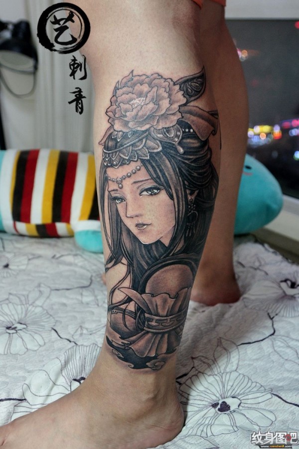 传统花腿纹身--18张传统风格的大花腿纹身图案作品