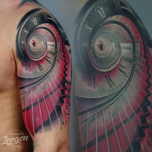 全新学校风格的彩色肩部催眠楼梯纹身图片