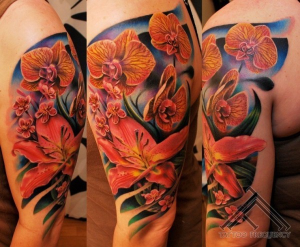 现实主义风格的彩色花卉纹身图案