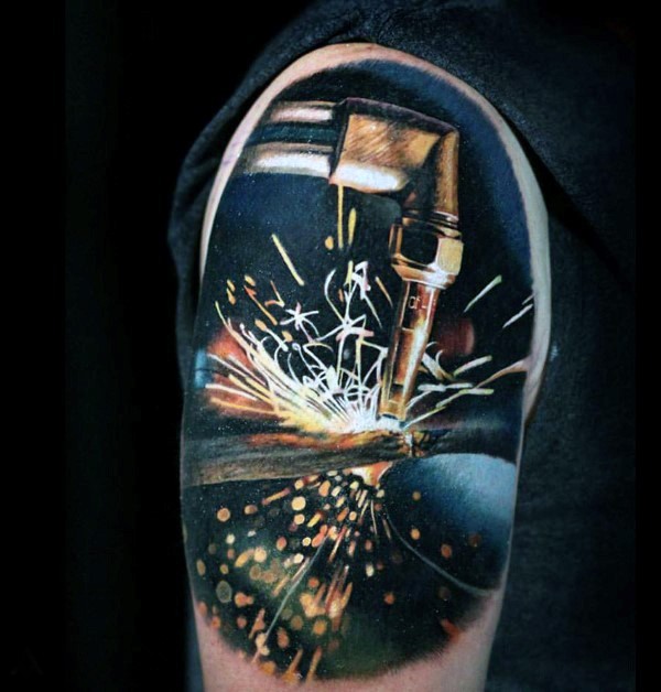 现实主义风格的彩色焊接工程纹身图片