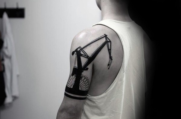 肩部黑色大型港口起重机的纹身图片
