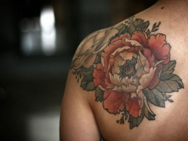 肩部彩色外观时尚芙蓉花纹身图案