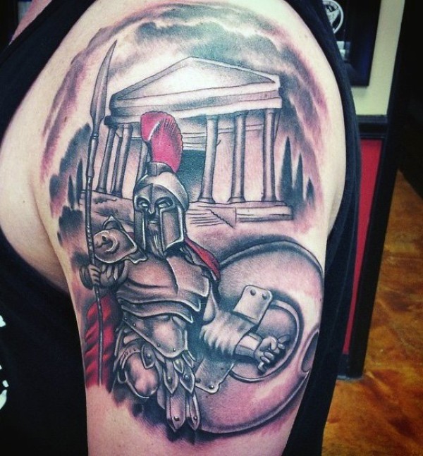 肩部自然的斯巴达战士的纹身图案
