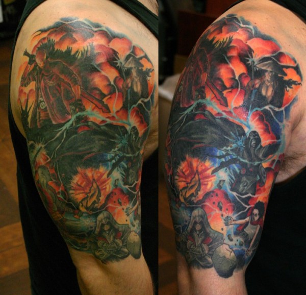 肩部惊艳各种彩色视频游戏英雄纹身图案